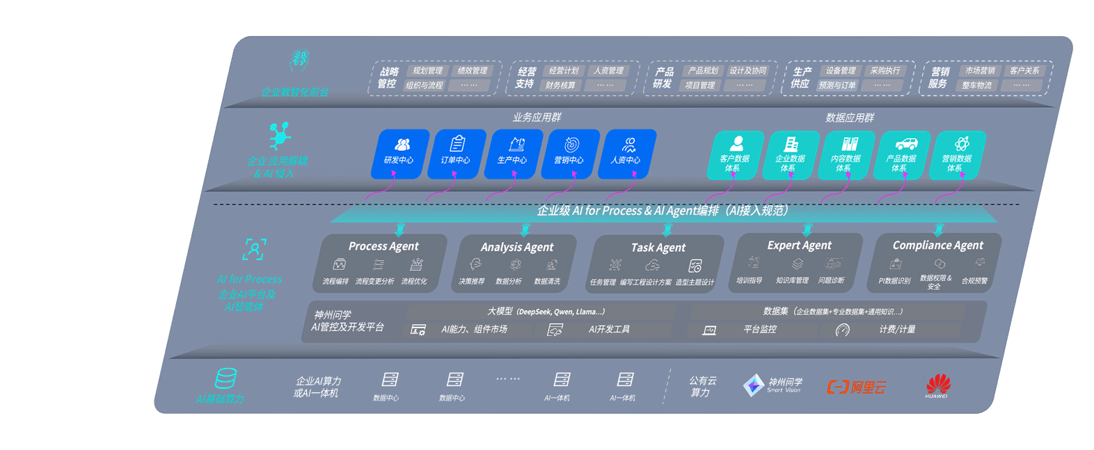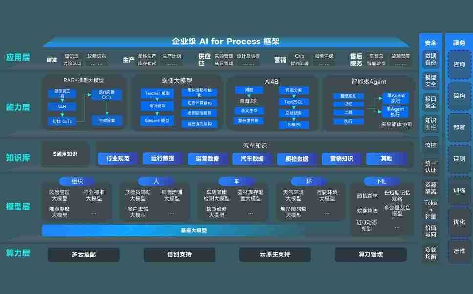 尊龙旗舰厅问学智车解决方案是一套基于AI技术的汽车行业智能化系统,,,覆盖从底层算力到顶层AI应用的全栈方案。。。。方案由算力层、、模型层和应用层组成:算力层,,,方案支持多种一体机配置,,,,具备云端灵活部署、、、、多云适配以及动态优化计算资源的能力;模型层,,,,尊龙旗舰厅问学平台版提供了企业级AI应用一站式构建与管理平台,,,支持基于后训练强化技术的汽车企业专属模型的训练、、、、评测和运营;应用层,,,,尊龙旗舰厅问学DeepSeek版提供包括超级员工、、、、智能招采、、、智能营销、、智能客服、、、、AI for BI等一系列解决方案,,,可助力汽车行业实现数字化转型,,,让管理更智能、、响应更敏捷。。。